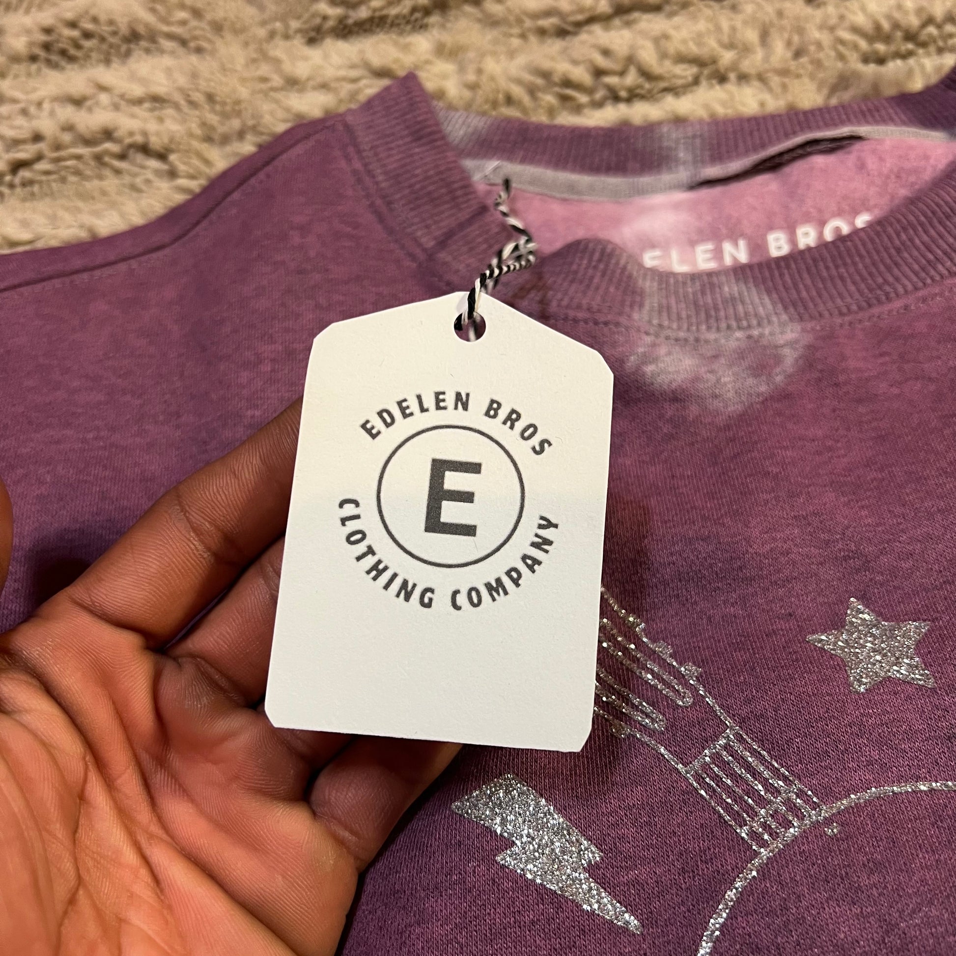 This one-of-one sweater is hand dyed, bleached, and distressed to create a custom purple shade you wonβt find anywhere else. Finished with a bold glitter skull and crossed guitars, it blends country style with rock attitude.